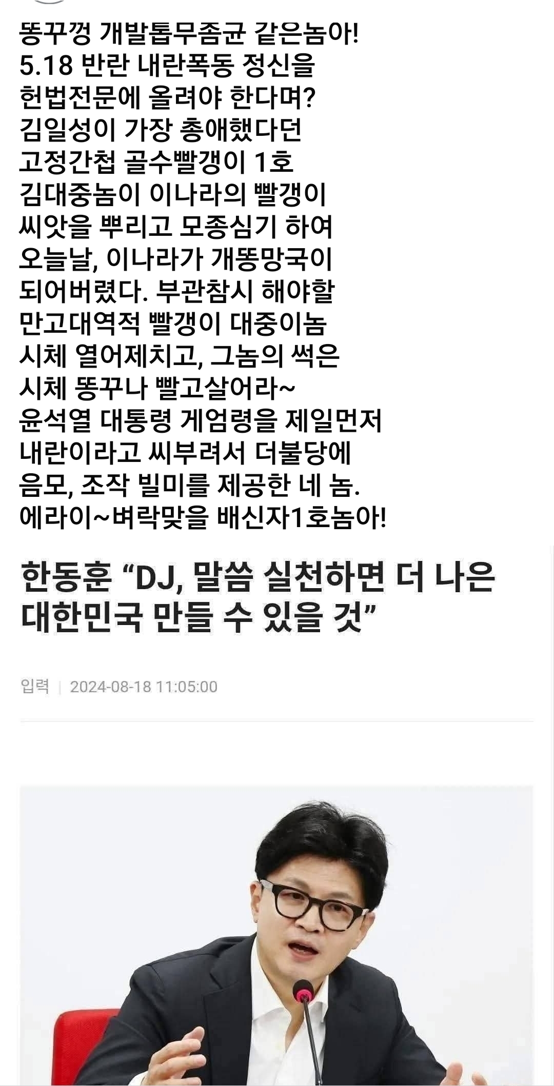 | 장동혁 대표에게 거듭거듭 촉구한다! 국짐당 내부기생충들 부터 몰아내라! 제발 할려면 쫌 좃빠로 제대로 해라! 김밥 옆꾸리 터지는 짓거리하지 말 (1) | 2025.12.27 |