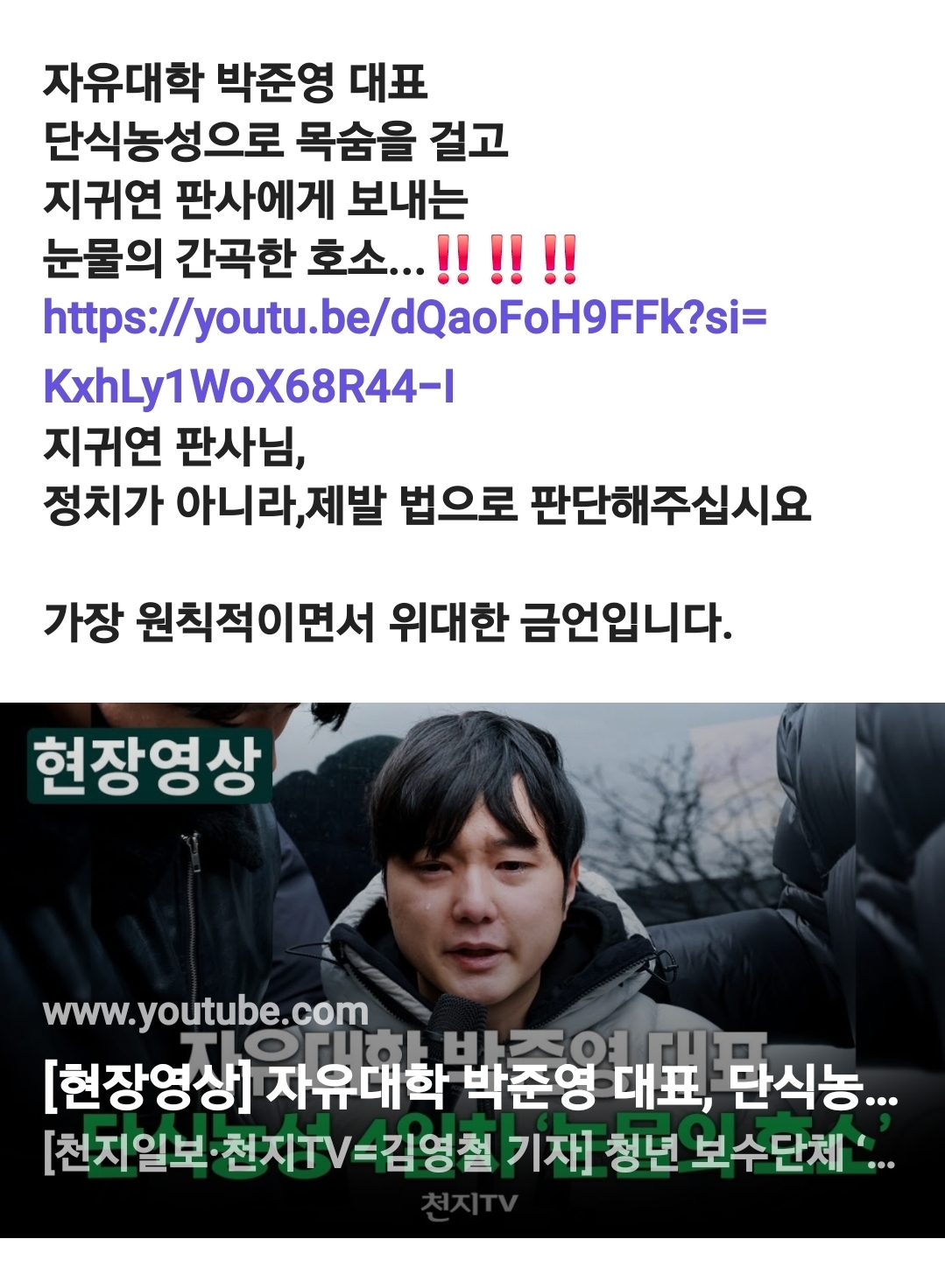 눈물의 간곡한 호소...‼️‼️‼️
