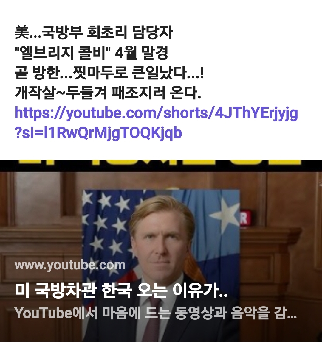 "엘브리지 콜비" 4월 말경