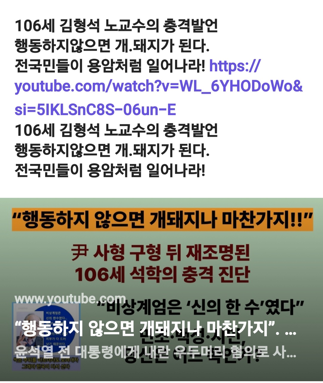 윤석열 전 대통령에게 내란 우두머리 혐의로 사형이 구형되고 1심 선고를 앞둔 지금, 106세 김형석 명예교수가 남긴 ‘비상계엄은 신의 한 수였다’는 글이 다시 주목받고 있습니다. 김 교수는